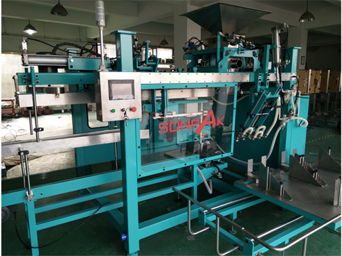 此款全自動包裝機(jī)生產(chǎn)線主要用于較規(guī)則,流動性好的顆粒物料的大袋包裝。